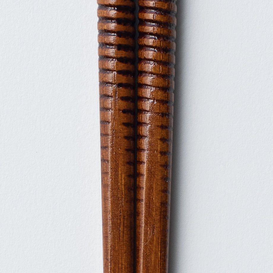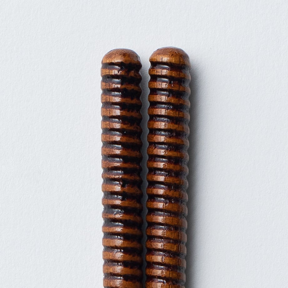 うずまき柄を彫刻した竹のお箸を拭きうるしで仕上げた、見た目も味わい深いお箸です。